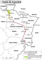 Keywords: Traité de Francfort.svg fr Le traité de Francfort Travail personnel d'après François Roth La guerre de 70 Fayard 1990 p 498 Romain0 01 02 2011 Cc-zero Maps of Alsace-Lorraine Maps of Franco-Prussian War