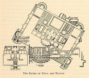 | Keywords: Trajanbathplan.jpg Plan of the Baths of Trajan in Rome http //www vroma org/images/mcmanus_images/trajanbathplan jpg 1911 see http //www vroma org/images/mcmanus_images/index2 html and look for plan of the baths of Trajan Samual B Platner PD-old Plans of the Baths of Titus Rome 6 Plans of the Baths of Traianus Rome 6 Domus Aurea 1911 Samuel Ball Platner |
