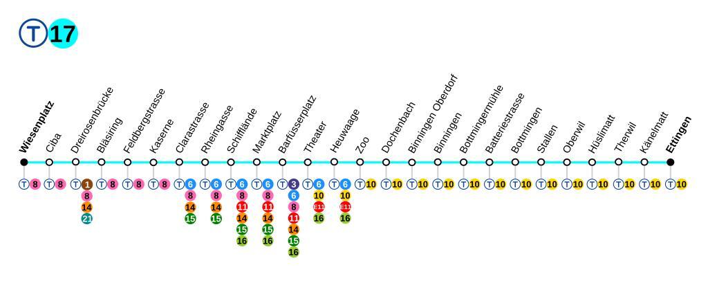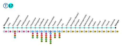 Keywords: Tramway Bâle 17-plan.svg fr Plan de la ligne de tramway numéro 17 du réseau de Bâle own work made with Inkscape from Image Métro Paris M14 2007 svg and Image Plan métro 3 Paris svg Sardon 2009-03-10 Basel tram line 17 Tram maps of Basel
