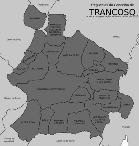 | Keywords: Trancoso freguesias 2013.svg  pt Freguesias do concelho de Trancoso Fontes Diário da República Reorganização administrativa do território das freguesias Lei n º 11-A/2013 de 28 de janeiro Direcção-Geral do Território Carta Administrativa Oficial de Portugal CAOP versão 2013 Continente http //www dgterritorio pt/ficheiros/cadastro/caop/caop_download/caop_2013_0/caop2013cont_zip_2 en Civil parishes in the municipality of Trancoso Portugal Sources Diário da República Administrative reorganization of the civil parishes' territory Law n 11-A/2013 from 28th January Direcção-Geral do Território Official Administrative Chart of Portugal CAOP version 2013 Mainland http //www dgterritorio pt/ficheiros/cadastro/caop/caop_download/caop_2013_0/caop2013cont_zip_2 2014-04-28 13 01 59 own Gazilion cc-zero Uploaded with UploadWizard Trancoso SVG maps of freguesias in Portugal |