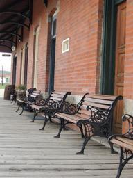 Keywords: tranquil train station vacation serene quiet bench tourism boardwalk alone travel wooden old peaceful solitude