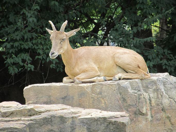 Keywords: transcaspian urial portrait wildlife resting rock wild sheep looking ovis orientalis arkal male horns ram outdoors zoo enclosure