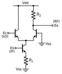 Keywords: Transistor Multiplier.svg en Transistor Multiplier Drawn by myself KStar 2009-11-11 PD Single balanced mixer circuits