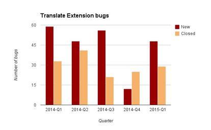 Keywords: Translate-bugs-2014-15.png en Number of new and closed bugs for Translate extension from 1 January 2014 to 31 March 2015 2015-04-13 own Runa Bhattacharjee WMF other versions cc-zero Uploaded with UploadWizard Uncategorized 2015 April 13