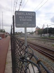 Keywords: Transperth Maylands Train Station all stop station sign.jpg The all stop station sign at Maylands Train Station own 2008-08-08 Shinjiman Shinjiman Maylands railway station