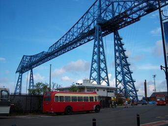 | Keywords: Transporter Bridge & United BG413 (LHN 860), 2012 Teeside Running Day (1).jpg Middlesbrough Transporter Bridge on the day of the 2012 Teeside Running Day This is the south end of the bridge viewed from the south west The road in the foreground is Ferry Road whose east-west portion pictured here was being used as the staging area for the event see the rally categories for further operational/location details Ferry Road is the bridge approach road curving around to the north on the right hand side to meet the cradle In the centre is preserved bus United BG413 reg LHN 860 To the left is the front of preserved Wallace Arnold reg VUB 396H On the right is the front of Stagecoach North East's driver training bus 21037 reg L37 HHN being used as the rally control point own 2012-04-22 Ultra7 2012 Teeside Running Day Middlesbrough Transporter Bridge Preserved bus in the UK LHN 860 |