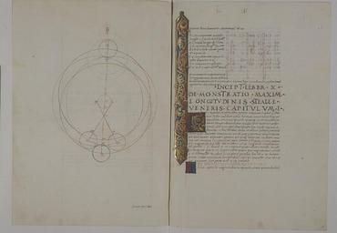 | Keywords: Trebizond-George-Commentary-Almagest-1482.jpg Photograph of a page from George of Trebizond's Commentary on the Almagest Book X on the left is a model of the planet Mercury showing its closest approach to the earth; on the right is information about Mercury including distances distances followed by the beginning of his treatment of the planet Venus http //www ibiblio org/expo/vatican exhibit/exhibit/d-mathematics/images/math18 jpg Rome Reborn The Vatican Library Renaissance Culture - An Exhibit at the Library of Congress Washington DC ~ 1482 George of Trebizond Public Domain PD-old 15th-century diagrams Almagest Mathematics exhibits George of Trebizond |