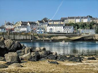Keywords: treboul france buildings town river water reflections shoreline dam boat hdr architecture outside
