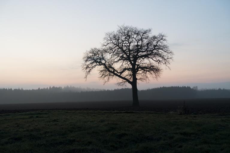 Keywords: tree arable abendstimmung landscape field nature sky mood fog agriculture plowed november coloring orange red blue
