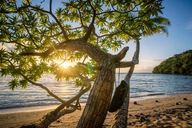 Keywords: tree beach ocean sea coast shore sunset evening foliage leaves plant vegetation sand paradise branches nobody vacation holiday water nature seascape sunlight