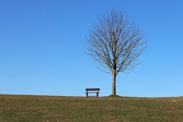 Keywords: tree bench seat sky blue resting place rest silent