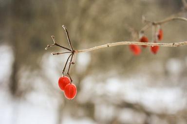 Keywords: tree berries branch twig winter snow forest field trail holly nature
