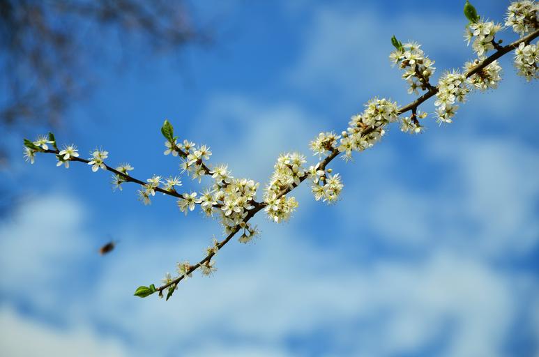 Keywords: tree blossoms flowers spring branch flowering twig white sky clouds blue nature frühlingsanfang