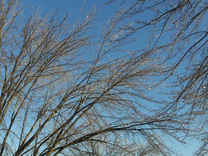 Keywords: tree branches ice nature cold winter sky up leaning