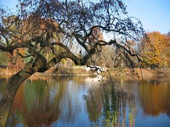 Keywords: tree bridge autumn park water lake mirroring