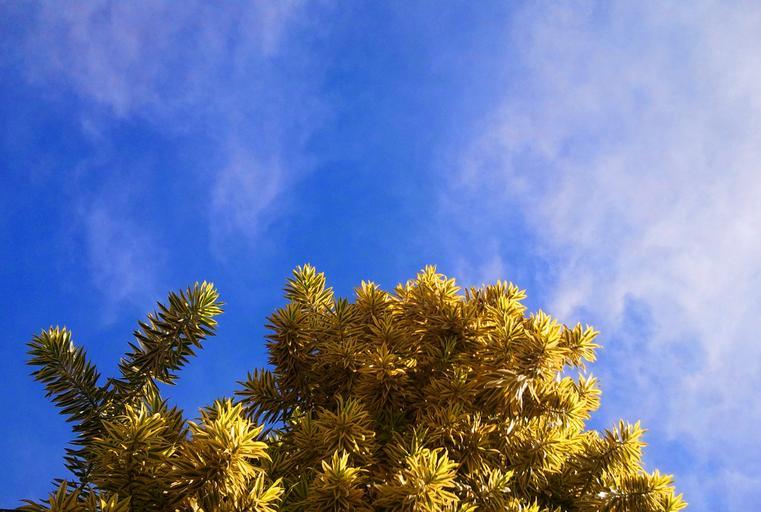 Keywords: tree canopy leaves foliage plant sky blue flora clouds dispersed