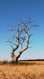Keywords: tree dead tree wood nature field blue sky landscape fields