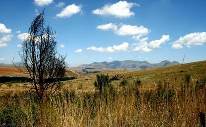 Keywords: tree dry grass veld mountain sky landscape clouds summer