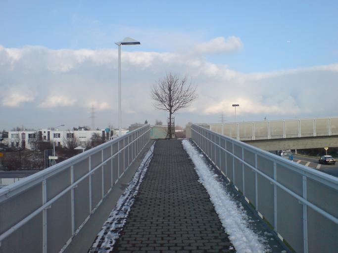Keywords: Tree Halfway Up A Bridge, Nice Touch.jpg A footbridge over the local road and railway line in Darmstadt-Arheilgen a suburb of Darmstadt Germany Looking northwards from the halfway point of the western walking / cycling ramp up to the bridge self-photographed 2009-12 Uploader 49 9140586 8 6446416 Photos taken by Ingolfson Bikeway bridges in Germany Footbridges in Hesse Footbridges over railway lines in Germany Trees in Darmstadt Vehicle ramps Darmstadt-Arheilgen 2009 in Darmstadt Bridge railings in Germany Street lights in Hesse Ramps in Germany Bridges with trees