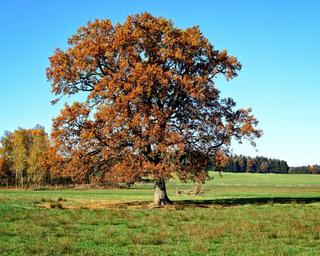 Keywords: tree individually autumn leaves sky landscape mood autumn colours fall color meadow field green nature