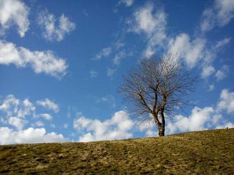 Keywords: tree kahl hill sky clouds grass walnut blue lonely clear spring