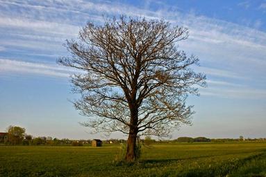 Keywords: tree landscape plain field green clouds view village spring loneliness the independence of the meadow