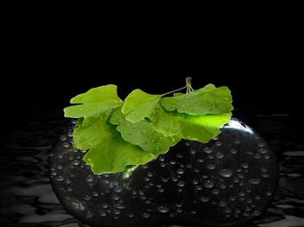 Keywords: tree leaves gingko mirroring china green plant drop of water stone wet drip water raindrop nature leaf pebble close mystical