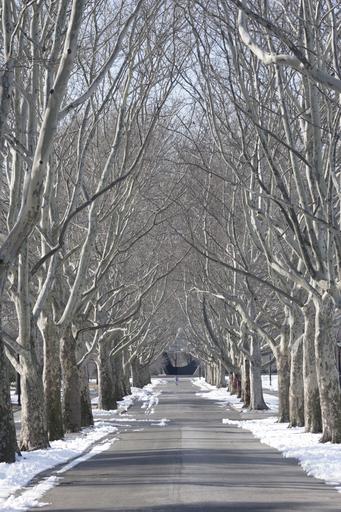 Keywords: tree lined flushing meadow park snow new york city queens