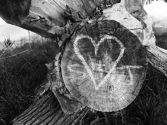 Keywords: tree love heart wood log dry black and white