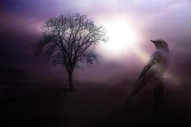 Keywords: tree plant bird animal plumage sky landscape nature sunrise lighting light