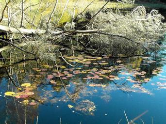 Keywords: tree pond mirroring emerge autumn forest colorful yellow golden bright hiking november mood