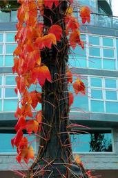 Keywords: tree red leaves fall autumn building glass city colorful contrast
