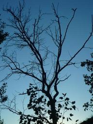 Keywords: tree shadow backlight branches dry leaves garden sky blue summer
