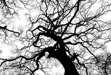 Keywords: tree silhouette branches tall high canopy top tree top black white monochrome branch nature forest ecology plant single