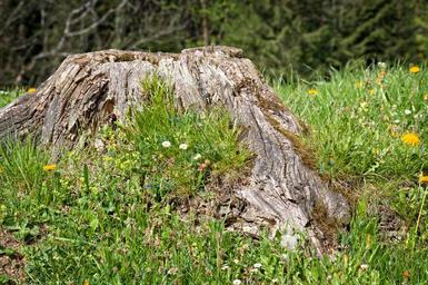 Keywords: tree stump root old morsch weathered nature flowers meadow