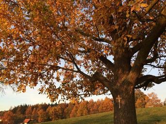 Keywords: tree sun nature landscape cross autumn colors peace atmosphere