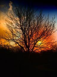 Keywords: tree sunset beautiful sky clouds orange red still nature landscape rest surreal dusk sun setting atmosphere mood evening grass grasses reed ambience blatter bush trees bushes hedge autumn fog outback shrubs
