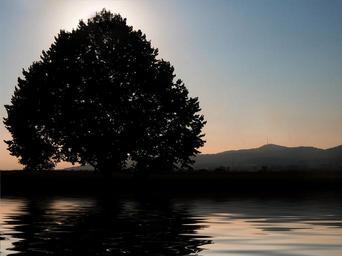 Keywords: tree sunset lake water wave beautiful sky still nature landscape rest dusk