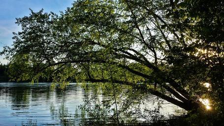Keywords: tree sunset water reflection nature natural summer sunlight forest outdoor evening scenic scenery view green light grass silhouette plant environment scene