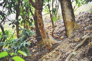 Keywords: tree trunks roots woods forest hill environment nature foliage branches