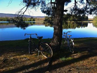 Keywords: tree vegetable sky clouds landscape nature water river laguna sunset lake spain bicycle