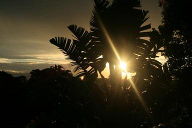 Keywords: tree wild banana strelitzia giant sub tropic sky glow sunset sun penetrating light bright