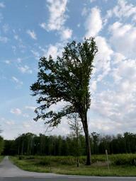 Keywords: tree wind road forest off road trunk countryside nature blue sky clouds
