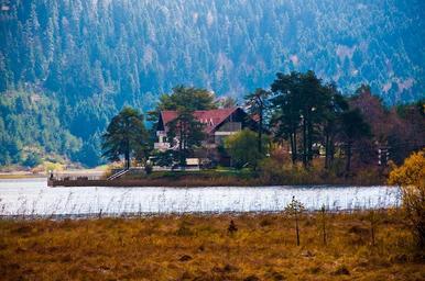 Keywords: trees forest nature lake water house fields grass peaceful secluded