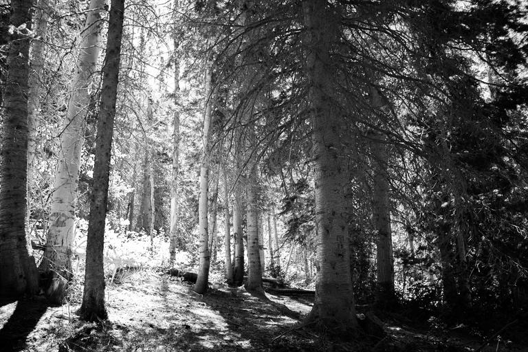 Keywords: trees hiking forest nature landscape outdoors adventure forest trees scenic black and white