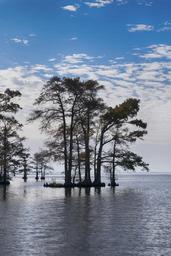 Keywords: trees in water sky blue north carolina