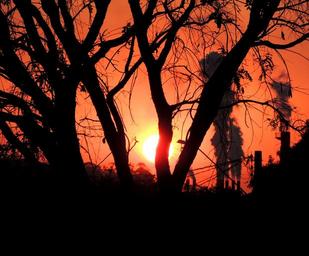 Keywords: trees pollution sol sunset against light