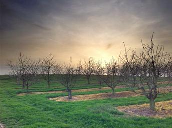 Keywords: trees spring nature landscape springtime blossom garden outdoor scene environment botany sky sunset view