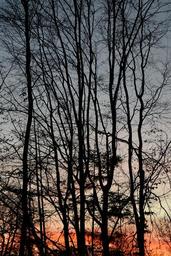Keywords: trees tree trunks sunset afterglow evening sky clouds sky abendstimmung reddish