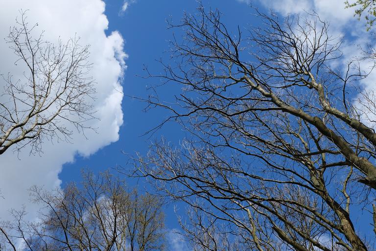 Keywords: treetop trees sky forest nature clouds canopy sky view perspective crowns